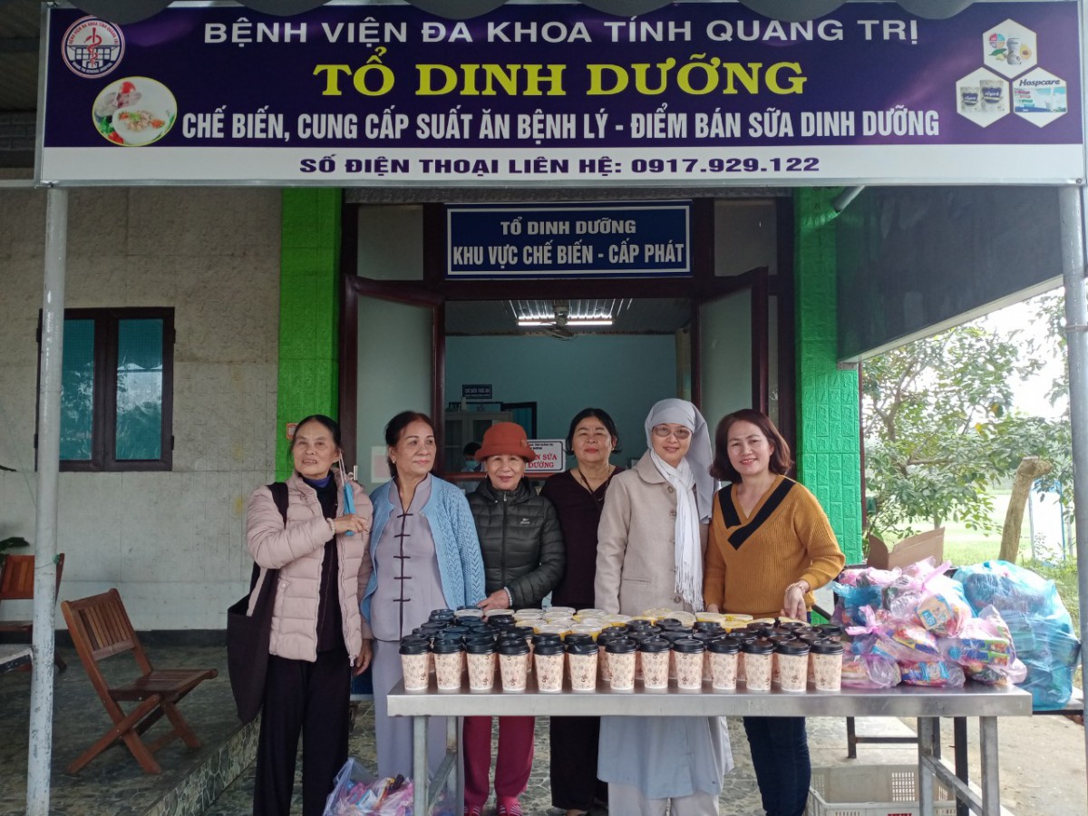 Đồng hành cùng với các hoạt động của Bệnh viện, chương trình cháo từ thiện của Nhóm thiện nguyện Nghĩa Tình đã triển khai tại Bệnh viện đa khoa tỉnh Quảng Trị nhiều năm nay vào chiều thứ 4 hàng tuần. Những suất cháo đầy ắp tình người đã được các thành viên trong nhóm nấu, đóng hộp và mang đến Tổ Dinh dưỡng Bệnh viện, nhân viên Tổ Dinh dưỡng sau khi kiểm tra chất lượng, thực hiện lưu mẫu thức ăn theo quy định thì những suất cháo ấm nóng được cộng tác viên công tác xã hội của các Khoa đến nhận và trao tận tay cho người bệnh.