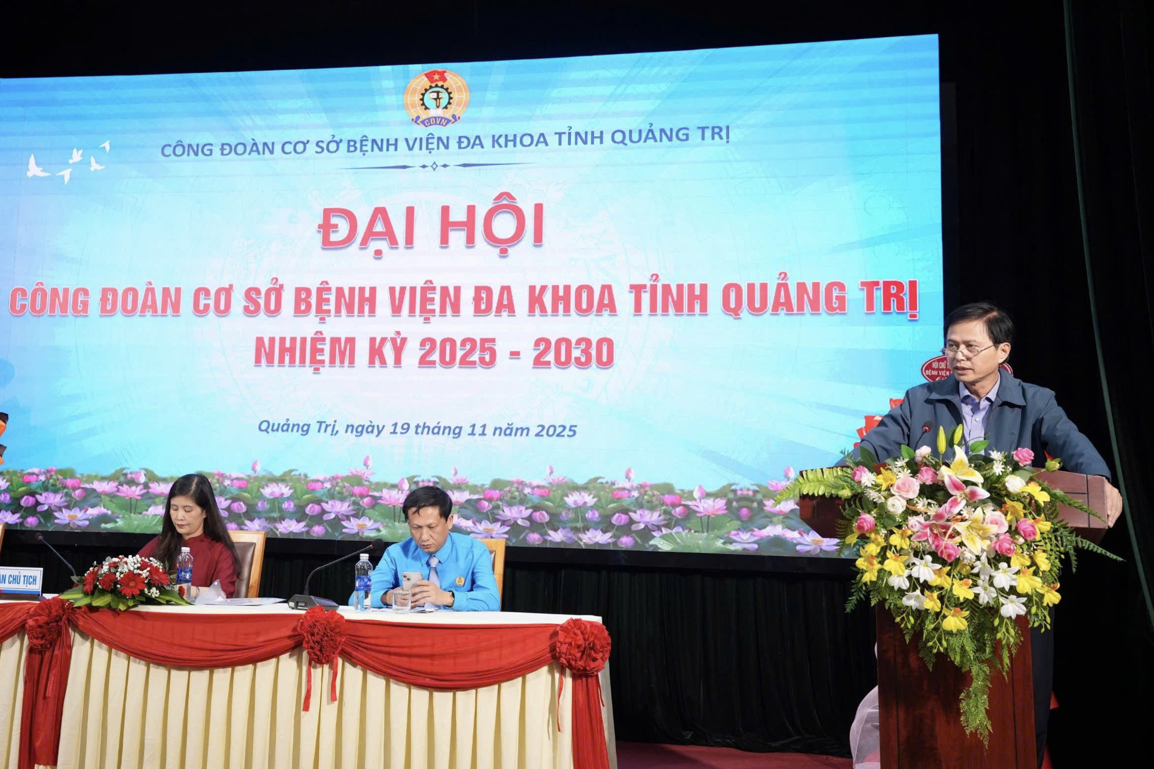 Nhiệm kỳ 2025 – 2030: Đổi mới toàn diện – Phát triển vững chắc – Hướng đến bệnh viện chuyên sâu Bước vào nhiệm kỳ mới 2025 - 2030, CĐCS Bệnh viện Đa khoa tỉnh Quảng Trị đặt ra mục tiêu xây dựng tổ chức công đoàn vững mạnh toàn diện; nâng cao năng lực đội ngũ đoàn viên; phát triển bệnh viện theo tiêu chí bệnh viện tuyến chuyên sâu của tỉnh. Nghị quyết Đại hội cũng đề ra 9 nhóm nhiệm vụ trọng tâm, trong đó đặc biệt chú trọng các nội dung: Chuẩn hóa chuyên môn theo tiêu chí bệnh viện tuyến chuyên sâu; mở rộng dịch vụ kỹ thuật chất lượng cao; Đẩy mạnh đào tạo sau đại học, đào tạo tại chỗ, chuyển giao kỹ thuật; khuyến khích nghiên cứu khoa học, sáng kiến cải tiến. Đẩy mạnh công tác tư tưởng, xây dựng đội ngũ viên chức và người lao động vững vàng, đoàn kết; duy trì việc học tập và làm theo tư tưởng, đạo đức, phong cách Hồ Chí Minh; nâng cao y đức, đạo đức nghề nghiệp và tinh thần phục vụ nhân dân. Phát huy vai trò trong xây dựng môi trường làm việc an toàn, lành mạnh, thân thiện, chuyên nghiệp; thực hiện tốt công tác dân vận; thống nhất đẩy mạnh triển khai bệnh án điện tử và chuyển đổi số. Tiếp tục phối hợp nâng cao chất lượng khám chữa bệnh, hiệu quả hoạt động chuyên môn và thúc đẩy nghiên cứu khoa học. Phát biểu tại Đại hội, đồng chí Phan Xuân Nam – Bí thư Đảng ủy, Giám đốc Bệnh viện biểu dương những kết quả và thành công mà CĐCS Bệnh viện Đa khoa tỉnh đạt được trong giai đoạn 2023 – 2025; Đồng thời đánh giá: “Kết quả đó cho thấy vai trò của tổ chức công đoàn ngày càng lớn mạnh, thực sự là chỗ dựa tin cậy cho đoàn viên và người lao động”. Đồng chí nhấn mạnh: Đại hội diễn ra trong bối cảnh tỉnh Quảng Trị vừa hoàn thành việc hợp nhất đơn vị hành chính cấp tỉnh, sắp xếp lại hệ thống chính trị, tạo nên yêu cầu mới đối với hoạt động của các tổ chức công đoàn.Trong bối cảnh mới tạo cho bệnh viện nhiều cơ hội, nhưng cũng nhiều thách thức. Vì vậy, công đoàn cần tiếp tục giữ vai trò là hạt nhân đoàn kết; là động lực thúc đẩy. Đồng thời là người giám sát, phản biện, đồng hành để thực hiện tốt các nhiệm vụ trọng tâm Nghị quyết đã đề ra.