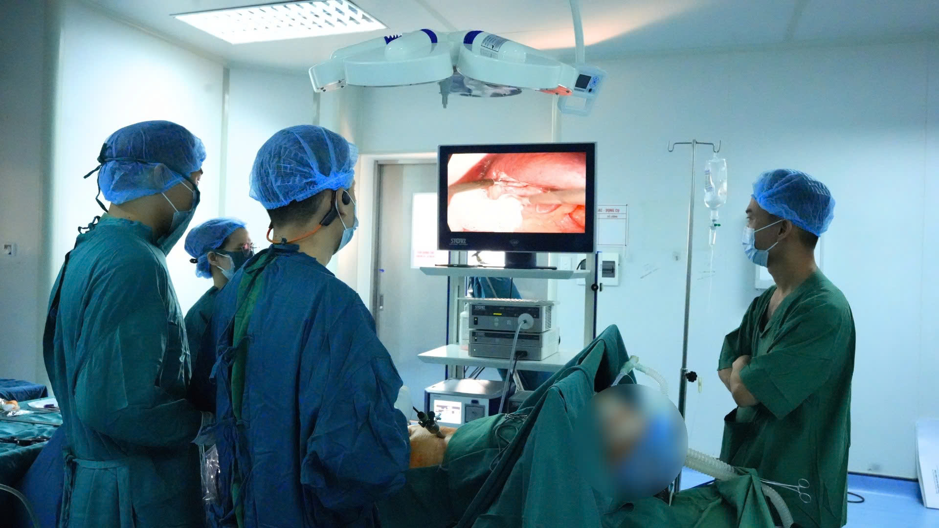 Bệnh nhân được chỉ định phẫu thuật nội soi cắt túi mật cấp cứu. Trong quá trình mổ, các bác sĩ Khoa Ngoại Tổng hợp ghi nhận có thấm mật phúc mạc; túi mật căng to, thành mỏng và hoại tử toàn bộ túi mật, khiến việc phẫu tích gặp nhiều khó khăn. Túi mật chứa nhiều sỏi. Ê-kíp đã kiểm soát động mạch túi mật và cổ túi mật bằng dụng cụ chuyên dụng, tiến hành cắt bỏ túi mật, đồng thời cầm máu, rửa sạch ổ bụng và đặt dẫn lưu dưới gan.