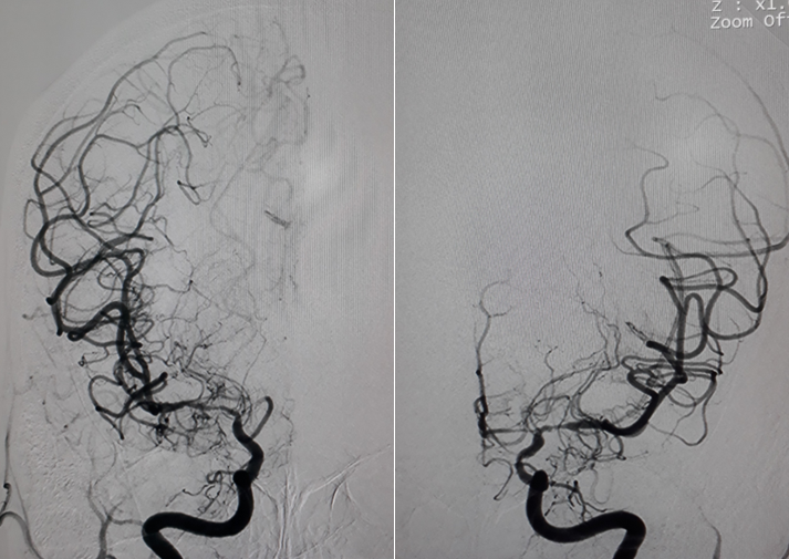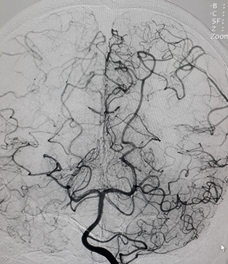 Một bệnh nhân trẻ tuổi, CLVT mạch máu não nghĩ nhiều đến hình ảnh của bệnh Moya Moya, vì vậy bệnh nhân được chỉ định chụp DSA mạch não để khẳng định chẩn đoán đồng thời tiên lượng khả năng điều trị bệnh.