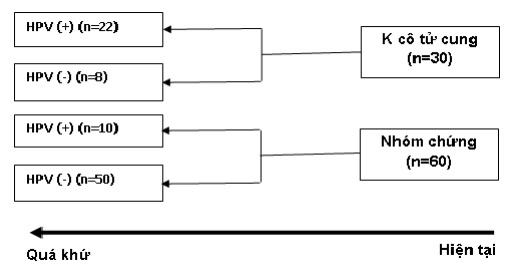 + Ví dụ: Trong 3 năm tại khoa Sản bệnh viện nhận điều trị 30 bệnh nhân bị ung thư cổ tử cung (CTC). Các nhà khoa học đặt giả thuyết rằng có thể ung thư CTC gây ra do Human papilloma virus (HPV). Chọn nhóm chứng gồm 60 người là các phụ nữ có cùng độ tuổi không mắc bệnh ung thư CTC. Tất cả các đối tượng này đều được làm xét nghiệm PCR để tìm HPV. Kết quả xét nghiệm PCR cho thấy có 22/30 (73,3%) bệnh nhân mắc ung thư CTC có HPV (+), trong khi chỉ 10/60 (16,6%) phụ nữ không bị ung thư CTC có HPV (+)