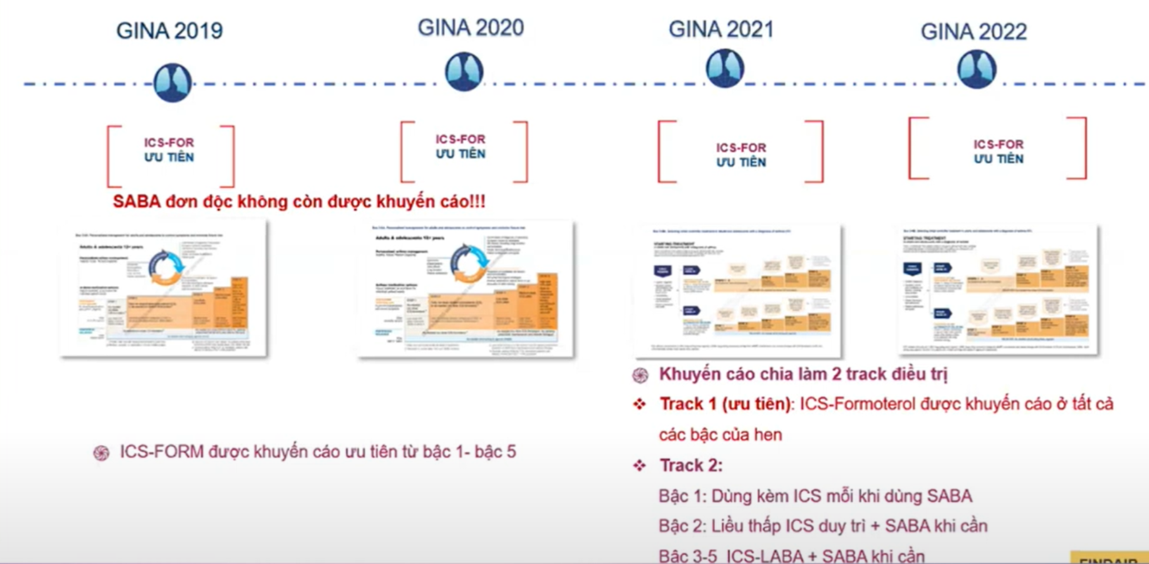 - Track 1 (ICS-Formoterol kháng viêm giảm triệu chứng +/- duy trì) là lựa chọn ưu tiên trong tiếp cận điều trị hen ở người lớn và thiếu niên