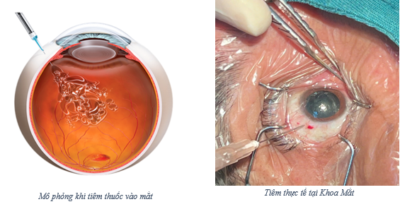 Thuốc Anti-VEGF được đưa vào nội nhãn bằng cách tiêm qua củng mạc (tròng trắng) để vào buồng dịch kính. Từ dịch kính, thuốc sẽ thấm vào võng mạc và các cấu trúc khác của mắt để điều trị một số bệnh lý.4. Lợi ích khi tiêm thuốc Anti –VEGF nội nhãn tại Khoa Mắt – Bệnh viện Đa khoa tỉnh Quảng Trị