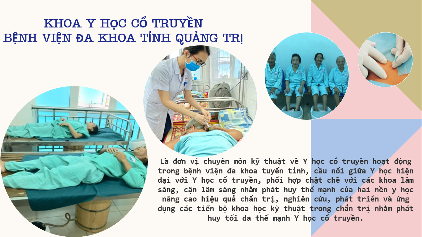 Xoa bóp, bấm huyệt Là thủ thuật dùng ngón tay, bàn tay tác động lên các vị trí huyệt trên da, cơ, khớp để đạt mục đích điều trị và phòng bệnh. Đây là kích thích cơ học (tác động một lực nhất định) lên vùng huyệt ở da, cơ, khớp, làm thay đổi về mặt thần kinh, thể dịch qua đó đem lại hiệu quả điều trị. Ngâm thuốc Y học cổ truyền Là dùng nước sắc hoặc hãm các vị thuốc để ngâm toàn thân hoặc vùng cơ thể mục đích phòng và chữa bệnh. Theo Y học hiện đại, ngâm thuốc có tác dụng điều hòa hoạt động của hệ tuần hoàn, thần kinh, tăng cường hệ thống miễn dịch, tăng chuyển hoá, chống viêm, giảm đau, chống stress và điều hoà cơ thể.