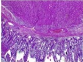 Tháo lồng thấy đầu lồng là một khối u ruột non kích thước khoảng 3cm nghi ngờ u gist, mạc treo ruột tương ứng không thấy hạch (Hình 3 và 4). Tiến hành cắt đoạn hỗng tràng kèm u với sinh thiết lạnh diện cắt âm tính. Phục hồi lưu thông tiêu hóa bằng nối hỗng- hỗng tràng tận tận. Quá trình hậu phẫu thuận lợi, không xảy ra biến chứng gì, bệnh nhân xuất viện sau 7 ngày. Kết quả giải phẫu bệnh lý sau mổ: mô bệnh học phù hợp với u gist đường tiêu hóa typ tế bào hình thoi ở ruột non, nguy cơ cao(Hình. 5). Bệnh nhân được tái khám khoa ung bướu sau 1 tháng.