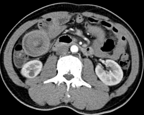 Hình 4. Hình ảnh u gist gây lồng ruột