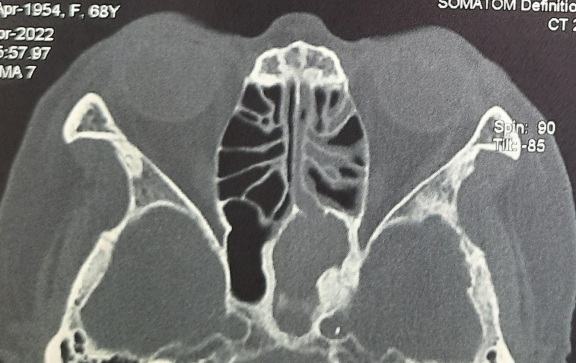 Nhân trường hợp bệnh nhân P.T.P nữ 67 tuổi vào khoa Tai Mũi họng Bệnh viên tỉnh Quảng trị vì đau nhức đầu nhiều vùng chẩm nhiều năm nay đã đi khám nhiều nơi nhưng không phát hiện ra bệnh, qua thăm khám ghi nhận: Bệnh nhân ngửi thấy mùi hôi trong hốc mũi, nội soi thấy dòng mủ đặc từ khe bướm sàng chảy về cửa mũi sau qua thành sau họng. Với sự hỗ trợ của máy CT scan 64-128 lát cắt, máy MRI 1.5 Tesla hiện đại khảo sát toàn bộ vùng hàm- mặt, cùng với kinh nghiệm lâm sàng các BS khoa TMH đã hướng đến chẩn đoán xác định là nấm xoang bướm trái. Và bệnh nhân được nhanh chóng làm phẫu thuật nội soi đê lấy đi khối nấm và làm sạch mở rộng xoang bướm để dẫn lưu. Hậu phẫu bệnh nhân ổn định, được nhân viên Y tế khoa TMH chăm sóc kỹ càng và xuất viện trong sự hân hoan của gia đình.