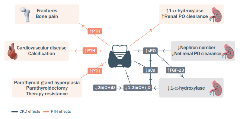 Gánh nặng toàn cầu của bệnh thận mạn đang gia tăng nhanh chóng và được dự đoán trở thành nguyên nhân thứ 5 dẫn đến tử vong của thế giới vào năm 2040. Tử vong của bệnh thận mạn liên quan đến nhiều yếu tố, trong đó có liên quan đến vai trò nội tiết của thận với chất khoáng và xương.