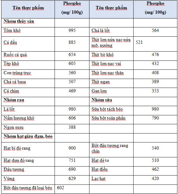 - Khuyến cáo hạn chế lượng phospho ăn vào trong chế độ ăn 800-1000mg/ngày bằng cách hạn chế tổng lượng protein ăn vào, chọn thực phẩm có tỷ lệ phospho/protein thấp và tỷ lệ hấp thụ phospho thấp, đồng thời tránh ăn thực phẩm có chứa lượng lớn chất phụ gia phosphate.