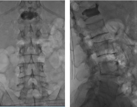 Hình ảnh bơm xi măng vào thân đốt sống L1