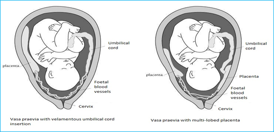 Khi chảy máu từ mạch máu của thai, tiên lượng thai nhi thường rất xấu. Trẻ sơ sinh thường thiếu máu rất nặng, phải truyền máu tức thì để cứu sống. Lý tưởng là có nhóm máu chuyên biệt cho bé hay nhóm máu O, Rh âm là cần thiêt. Nếu thai chết thì khởi phát chuyển dạ sinh ngã âm đạo