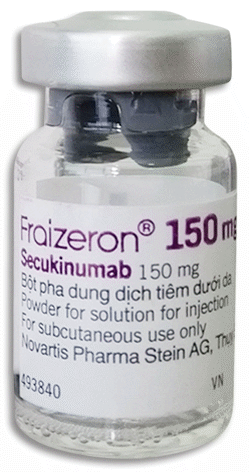 Tháng 1/2015, cơ quan quản lý thuốc và thực phẩm Hoa Kỳ (FDA) đã công nhận thuốc sinh học có tác dụng ức chế tế bào đích gây ra bệnh vảy nến là Secukinumab 150mg của hãng Novartis, Thụy Sĩ trong điều trị vảy nến thể trung bình đến nặng. Đến tháng 6/2016, thuốc được Bộ y tế cấp phép đưa vào sử dụng tại Việt Nam. Như vậy, đây là một trong những loại thuốc điều trị vảy nến mới nhất trên thế giới và Việt Nam. Thuốc đã được ứng dụng điều trị tại nhiều bệnh viện tuyến trung ương và đã mang lại kết quả hữu hiệu, ít tác dụng phụ trên nhiều bệnh nhân.