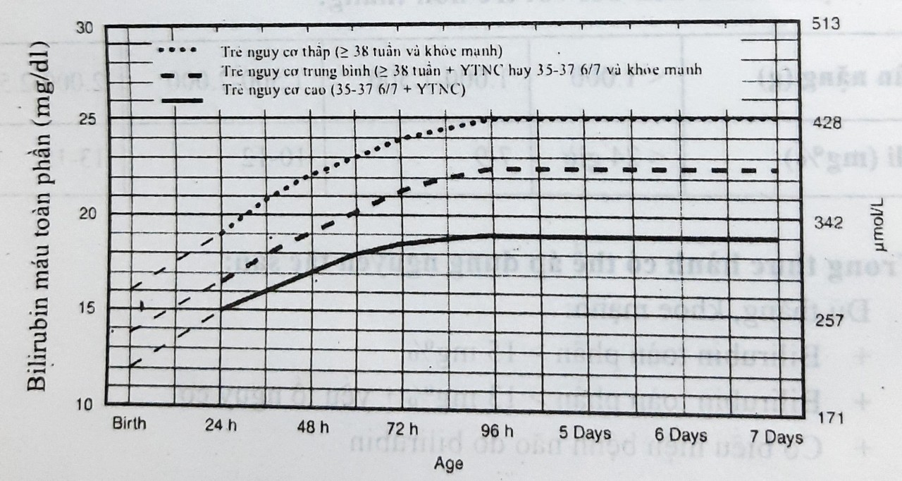 Vàng da nặng: Theo Tổ chức Y Tế Thế Giới, vàng da nặng (áp dụng trẻ >=35 tuần tuổi thai) nếu: